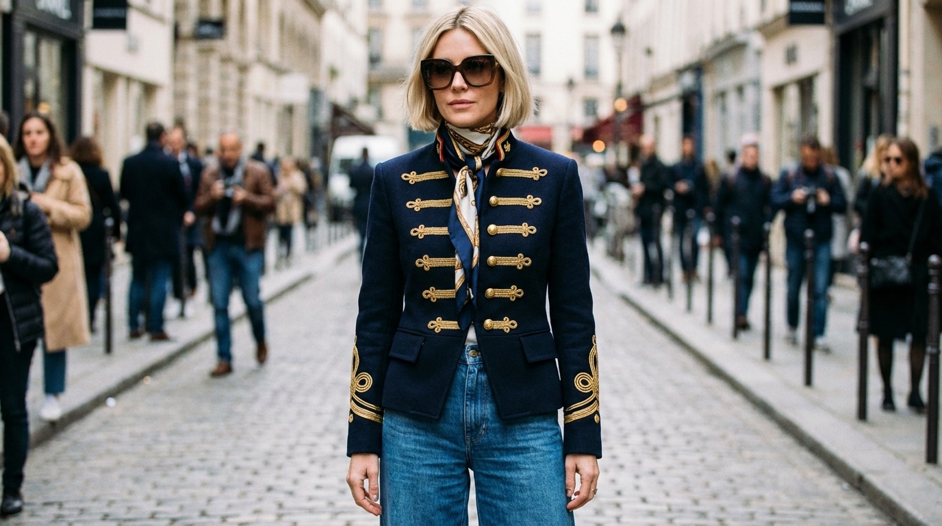 Au-delà de l'esthétique, ce retour de l'uniforme traduit un besoin psychologique profond. Dans un quotidien qui file à cent à l'heure, enfiler une veste structurée agit comme un tuteur pour l'allure. Elle redresse le dos, ouvre le plexus et confère immédiatement une contenance assurée. Là où le blazer oversize noyait parfois dans un flou artistique, la veste officier dessine une ligne de conduite. C'est une pièce d'empowerment vestimentaire : on l'enfile comme on enfilerait une dose de courage avant une réunion importante ou un premier rendez-vous.