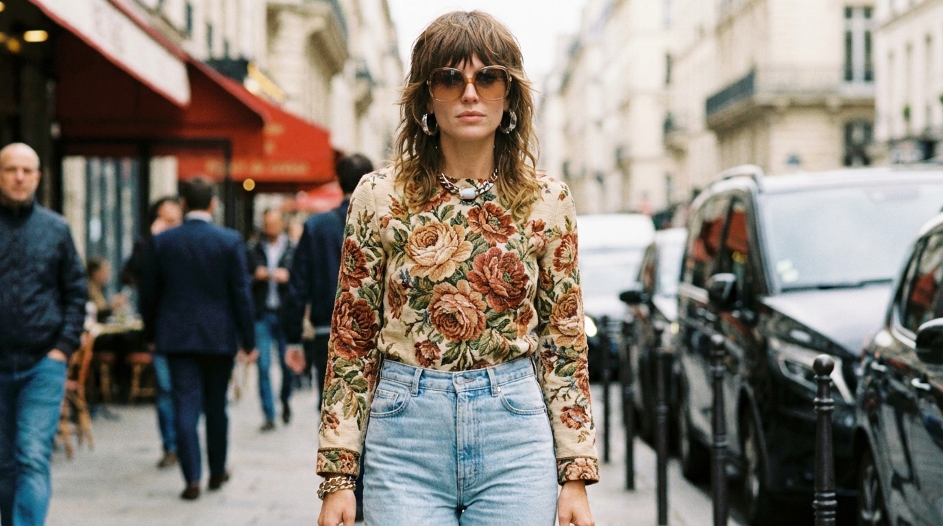 Porté avec des coupes modernes, des accessoires minimalistes ou des matières fluides, l’effet tapisserie devient une déclaration de style à part entière, entre nostalgie chic et audace mode.