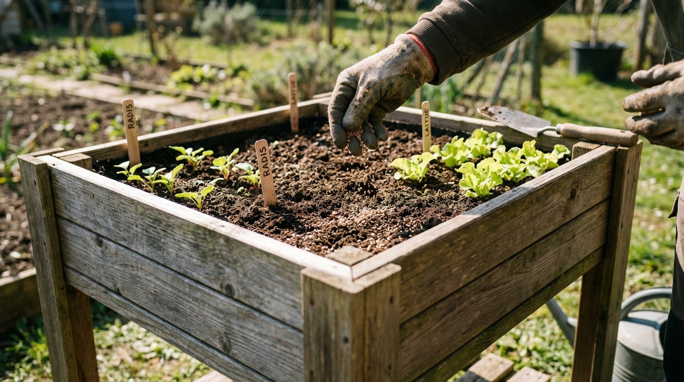 Pour les bacs destinés aux légumes-racines (carottes, navets, radis), évitez les terreaux trop riches en azote et privilégiez un mélange encore plus drainant. Pour les plantes aromatiques méditerranéennes (thym, romarin, lavande), ajoutez davantage de sable ou de gravillon fin : ces plantes sont taillées pour les sols pauvres et bien drainés de leur région d'origine.